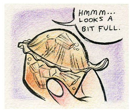 Actually, she doesn't, this cartoon ends poorly. But good luck with that fruit cup.